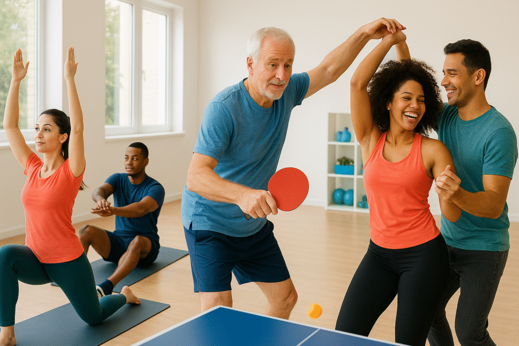 Wir möchten, dass Gesundheit auch mit Freude und Bewegung erlebt wird. Deshalb bietet OstVital Aktivitäten für alle Altersgruppen und Leistungsniveaus an: Yoga, Pilates, Tischtennis und Tanzkurse wie Salsa, Bachata, Kizomba und Zumba, unter anderem. Diese Angebote bieten Raum zum Trainieren, Kontakte knüpfen und Spaß haben, wobei körperliche Gesundheit und Wohlbefinden auf eine unterhaltsame und inklusive Weise gefördert werden.